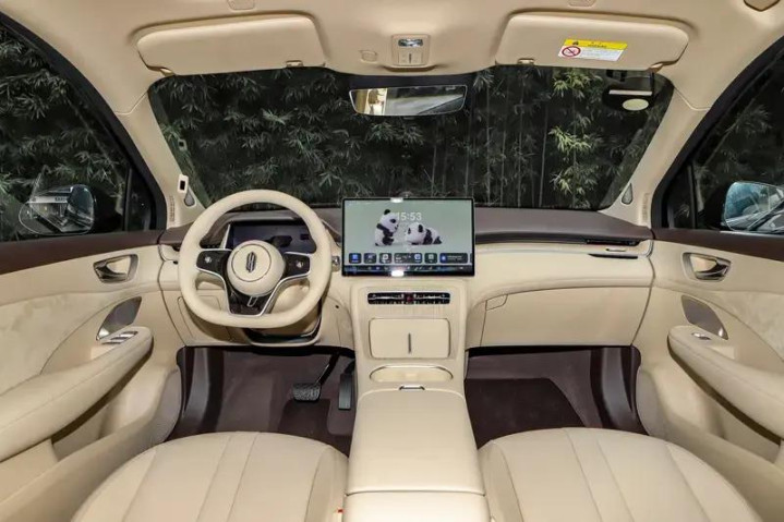 内饰方面,新车采用了时下流行的简约化设计风格,营造出一种时尚温馨的内饰氛围。具体配置方面,新车前排搭载液晶仪表及大尺寸悬浮中控屏,此外还配备了三幅平底方向盘、手机无线充电面板以及全景天幕。